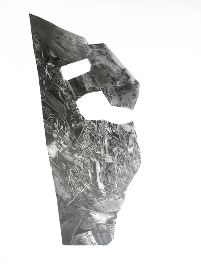"My work explores how photography shapes our ideas about nature, climate disasters, and environmental collapse. The Aesthetics of Collapse is based on photographs of recent natural and man-made disasters produced for the United States Geological Survey. In the series, select photographs from the USGS digital archive are recombined and cut into an assortment of non-rectilinear shapes, a process that involves both accumulation and destruction.
