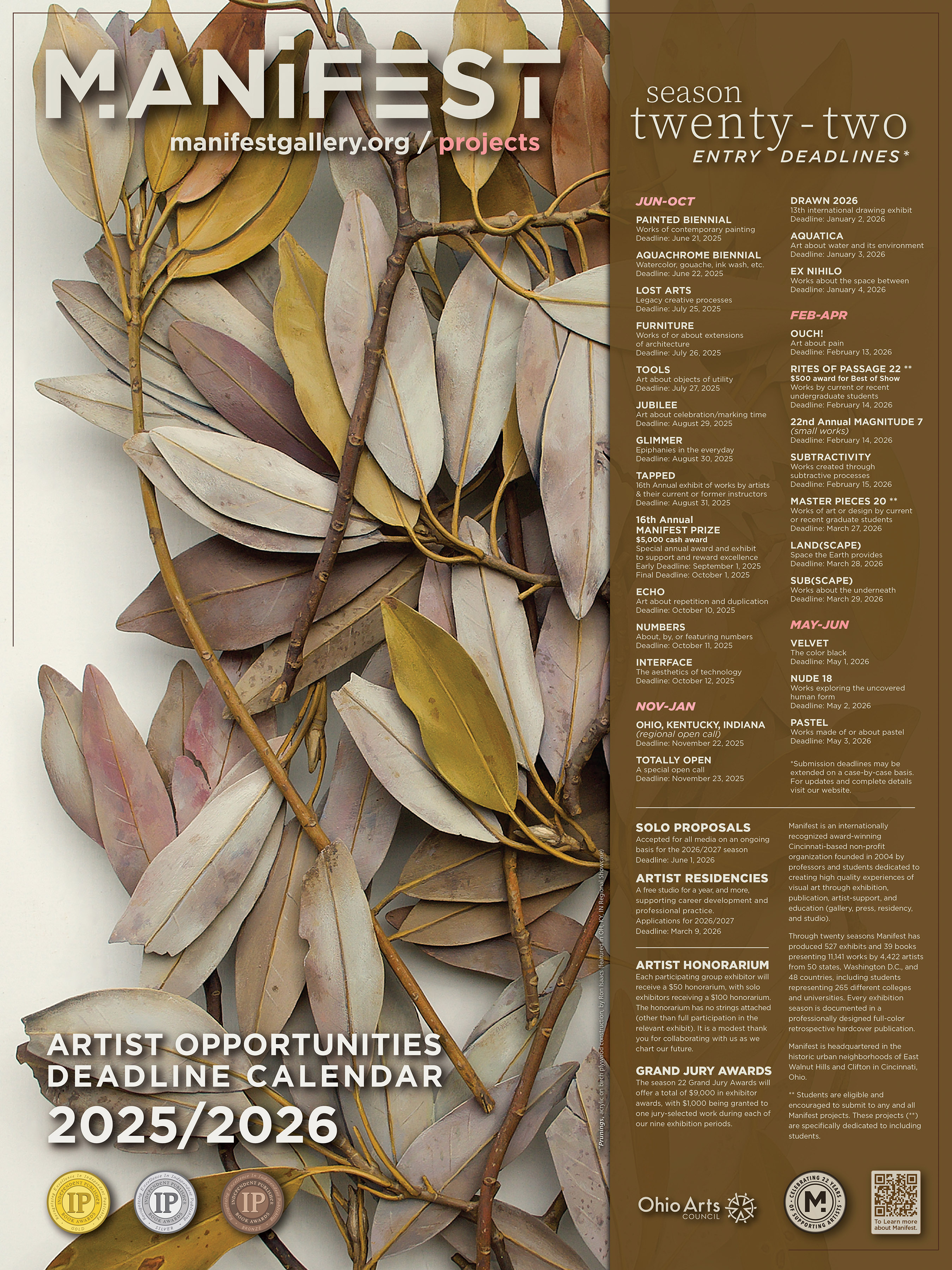 the Ohio Arts Council, and through the generous direct contributions of hundreds of individual supporters and private foundations who care deeply about Manifest's mission for the visual arts. |