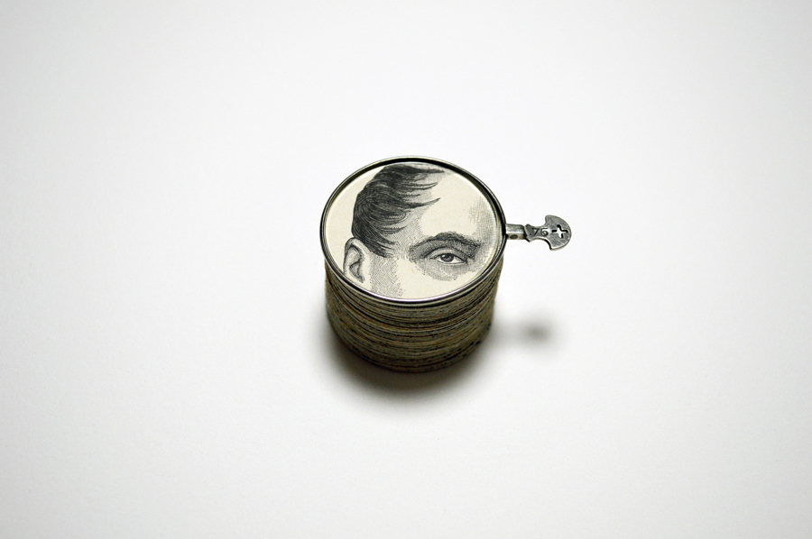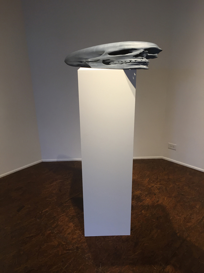 3D printed plastic (generated from CT scans of the artist's own skull)