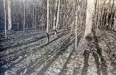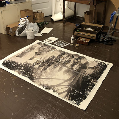 What I Saw in the Water "'What I Saw in the Water' speaks to the vulnerability and sorrow steeped deep in the muddied waters of the Gulf Coast. Using photographs in conjunction with image transfer, I offer viewers a chance to immerse themselves in a story of suffrage, loss, determination, triumph, and repetition. While the story is rooted in my experiences, universal themes resonate throughout: environmental destruction, ruminations on place and its effects on identity, cultural history, and the importance of remembering. The photos that make up this body of work were taken along the Bayou Teche in south-central Louisiana. They contain landscapes, swamp-scapes, archival imagery, and pictures of loved ones that blur the past, present, and future. Through the process of image transfer, the photographic surface is exploited as though it were wet paint. The resulting grotesque-like texture becomes symbolic of the destruction caused by heavy rainfall and flooding waters, reflecting how the local communities remain at risk as much as the environment. Grief is an important word to remember when thinking of the Gulf Coast, and the suffrage, both past, and present is etched into the culture. While catastrophic events come and go, the damage remains on the sea floor, waiting to resurface"