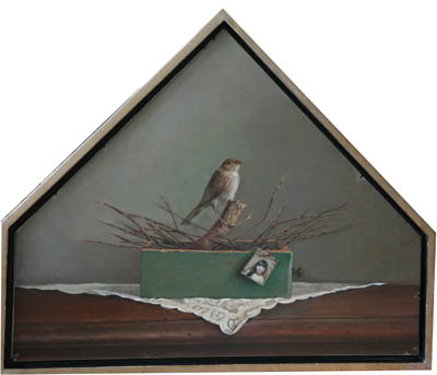 Of her work Harris states: My paintings communicate a state of controlled chaos as I combine two divergent forces and approaches: realism and abstract expression. Displaying a proficient handling of light, a mastery of images, and a skillful mark making method, the paintings confer an illusion of reality to something that isn’t. The end result is a space between magic and illusion, rooted in the American Realist tradition. My philosophy is that art is magic, and the magic is illusion. My creative theme is internal perspective. This intimate, cohesive thread connects my artwork throughout my career. My goal is to transport the viewer into another realm of intimacy and exploration. At first glance the works are just examples of narrative painting, however the narrative conveys my concern for issues that affect our contemporary society, particularly man’s impact on our environment, causing climate change. The imagery I have chosen throughout all my series (figure, still-life, and nature) are my observations that represent this impact. They are my intimate vision of life.