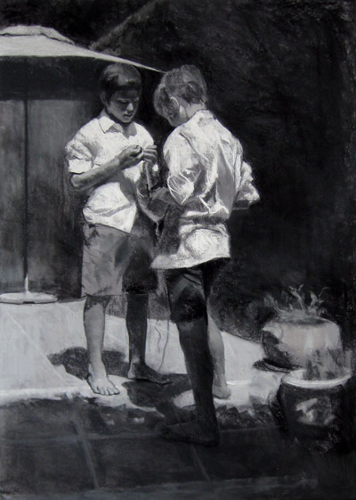main gallery and drawing room 2nd Annual Manifest exhibits many kinds of works, from the most conceptual and experimental to more traditional. In fact we think it's important to have such a range in our repertoire. In our Drawing Center Studio we provide opportunities and instruction to professionals and students to study life-drawing. Although our studio is not limited to working just from the nude model, it is a core component in our curriculum, and our flagship studio offering. So a year ago we asked ourselves - why not add another annual exhibit to our roster, this one dedicated to works that in some way depict, explore, or address the human nude form? The first exhibit turned out to be a solid success. This year we were excited to renew our invitation to artists to submit works in any media, of any style or genre, (abstract, conceptual, highly realistic, etc.), and of any size, for consideration in Manifest's second annual NUDE, an international competitive exhibit exploring the uncovered human form in current art. For this exhibit 270 artists from 41 states and 11 countries submitted 675 works for consideration. Twenty-five works by the following 19 artists were selected for presentation in the gallery and catalog. Ami Badami Ken Buck Nora Daniel Thomasin Dewhurst Valerie Escobedo Melissa Hall Marshall Harris James Keul Daniel Maidman Douglas Malone William McMahan Douglas Prince Michael Reedy Matthew Schenk Christine Schirmer Benjamin Shamback Kendric Tonn Donna Wilson Christine Wuenschel
