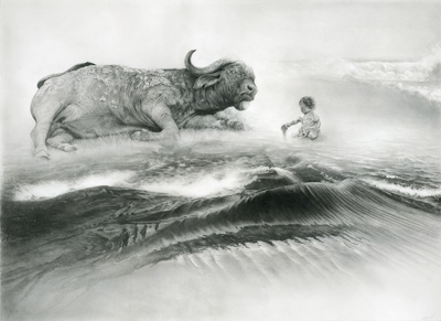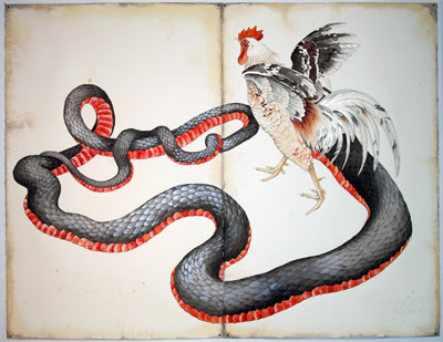 main gallery, drawing room, parallel space BESTIARY Images of animals in art have existed parallel to those of humans for as long as images (and objects) have been made by people. Our social, creative, and psychological evolution is inextricably tied to our relationships with animals. Whether it be the taming of the wolf, resulting in 'man's best friend', the tethering of the horse which magnified the power and geographic reach of humans, or the domestication of herd animals which contributed to the establishment of cities and large concentrations of people (and the growth of culture), they are all part of the trajectory of humanity to this point in time. And all have been documented, explored, and deified throughout the long process by images and objects featuring animals. But this isn't just history (and pre-history). The animal remains a powerful subject in contemporary art. So Manifest has set aside its entire exhibition space, three galleries, to feature an exhibit which will reveal the state of the animal in contemporary art. For this exhibit 410 artists from 41 states and 23 countries submitted 985 works for consideration. Twenty-five works by the following 17 artists from eleven states and four countries were selected by our two-part jury/curatorial process for presentation in the gallery and catalog. Bethany Carlson Laara Cassells Justin Gibbens Anna-Lena Gremme Brian Hoover Larassa Kabel William Kitchens Noriko Kuresumi Jillian Ludwig William McMahan Leighton McWilliams Steven Snell Susan Sterling Rosalind Tallmadge Jessica Teckemeyer Royden Watson Nicholas Wood