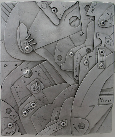parallel space ONE: The Manifest Prize...Episteme A work by Yun Jeong Hong All of Manifest's calls for entry are competitive. The stiffness of the competition has increased in proportion to Manifest's growing reputation, powerful mission, and international reach. Our mission to stand for quality, to create a system whereby works are judged with objectivity as a primary aim, and assembled with as little subjective ego as possible has gained the respect of thousands of artists from all over the world, and a vast following of arts lovers, patrons, and supporters. We maintain that a smaller gallery enables intensely refined exhibits to take place, and we respect the creative principle of reduction to an essential conclusive statement for each exhibit we produce. This is what has led to the high caliber of each Manifest exhibit, and to the gallery's notable reputation. With this principle of reduction in mind, we were inspired by the intensity of our jury process to whittle down a collection of entries to a suitable exhibit. With this we determined to push the process to the ultimate limit - from among hundreds to select ONE single work to be exhibited in a gallery all to itself. Manifest's jury process for ONE included three levels of jury review of 400 works by 204 artists from 39 states and 17 countries by a total of 13 different jurors. Each level resulted in fewer works passing on to the next, until a winner was reached. The size and nature of the works considered was not a factor in the jury scoring and selection. The winning work is a sculptural assemblage entitled "Episteme" by Yun Jeong Hong of Champaign, Illinois. It will be the recipient of the $400 MANIFEST PRIZE, and presented in the Parallel Space Gallery as the highlight of the process, an honor to the artist, and a poignant statement for gallery visitors. The Manifest Prize is planned to be an annual or biennial offering. The cash award for the first ONE prize will be $400. Five semi-finalists will also be featured in the full-color exhibit catalog. These are works by John Carrasco, Richard Gilles, Matt Klos, Noriko Kuresumi, and David Smith.