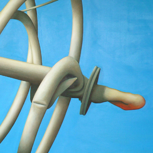 My paintings often playfully present a collection of the truly uncollectible: shadows, the self, the body. When representing flesh I do not allow the viewer the fantasy of possession, body parts, to which one cannot apply a label, cannot become sequestered object.