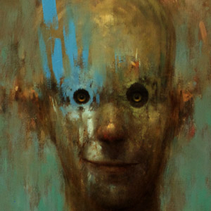 My work often involves playing with themes evolving around the parallels which exist, the contradictions within us, the dark and light of existence, peace and violence, chaos and calm. I enjoy playing with words and sometimes weave humor through the narrative to convey the absurdity of a situation. The paintings range from small atmospheric oils on board to large, more involved and complex compositions. The smaller works focus primarily on texture, creating mood and movement through the use of strong tonal ranges and loose brushstrokes.I layer the piece with a mixture of impasto and glazing and often sand back, scrape and rework the piece until a rich 'history' builds. The larger works are often theatrical in nature, depicting an array of  quirky characters thrown together in a world not entirely of our own but with references to it. The works are rich in symbolism reflecting aspects of my own life and issues of a wider nature.