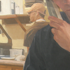 As a figurative painter, I have always been interested in the body and its ability to communicate. I am drawn to informal images that depict the routine movements and motions of our everyday lives, finding a certain honesty and truth in the physicality of these ordinary movements. My current paintings are a study of the individuals who work at a local deli, focusing on the repetitive daily tasks of work.