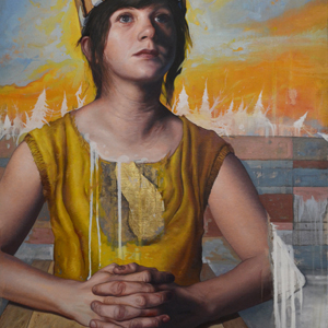 My interest as an artist is related to how people build personal identity in relation to personal memory and his/her social world.  Depending on the situation the individual has experienced can drastically alter the shape of a person's memory and furthermore, a person's identity and social perception.  As a painter, I represent figures trapped in an environment of uneasiness and flux.  Some or all of the figures in my paintings are partially concealed by a veil or mask. Partially concealing the identity of an individual(s) takes away the personal relationship viewers would expect from represented individuals. Each character in my paintings has become one with their environment and can evolve toward empowerment or devolve into personal displacement and loss of identity.