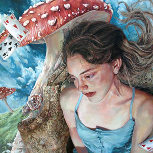 My understanding as a female in society fuels the content of my work. I juxtapose the female figure with the wildness of nature to convey a sense of female power. I am greatly influenced by works of literature that represent the female through supernatural imagery. I expand the Romantic idea of nature as a sublime element, emphasizing the weather, and other natural phenomenon, so as to expose the disorderly freedom of the natural world. The unruly landscape mirrors the mysterious female figure. Furthermore, I represent the figure in an isolated environment, with a strong gaze toward the viewer. My cool color palette assists in creating a mood that reflects the dismal emotion of the figure. The melancholic expressions of the figure, combined with natural phenomenon, convey a sense of intrigue. All of these decisions allow me to engage the viewer with sensual wonder and emotion.