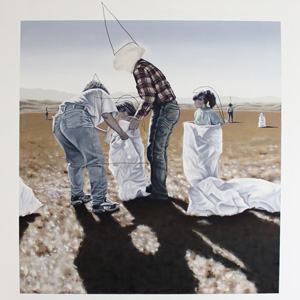 This collection of paintings is based on a set of my childhood drawings that I found last year. I had drawn directly on a number of reprinted black and white photographs in a book documenting a person's travels through the American West. Upon viewing my drawings anew, I saw the work of a child attempting to subvert the quaint narrative of the photographs. My younger self was refusing to play the role of passive viewer, and was instead exerting control by injecting his own perceptions into that narrative. As an adult, I could now see the impulsive and, at times, furious manner in which the drawings were created. In this new collection of paintings, I explore the underlying psychology and aesthetic choices in the original drawings.