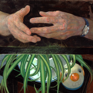I've been painting from the figure for over forty years and only recently I have found an interest in still life as a subject. Still life seemed to provide an opportunity to evade the suggestion of narrative, allowing for concentration on more formal issues. That said, I still, often, discover a protagonist in the compositions. In each of the works selected for this publication there is a toy of shiny plastic, a constant companion in my studio, a watcher and a memento of a time past.