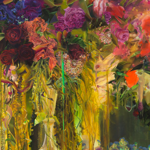 My work weaves personal fantasies and anxieties about the unknown into surreal staged scenes. Through saturated colors, high contrast, theatrical lighting, and varied surface textures, I create exaggerated, romantic worlds gone awry. I use these extremes to convey a confliction of emotional truths. The cornucopia opulence is sometimes ecstatic and sometimes a choking, suffocating illusion.