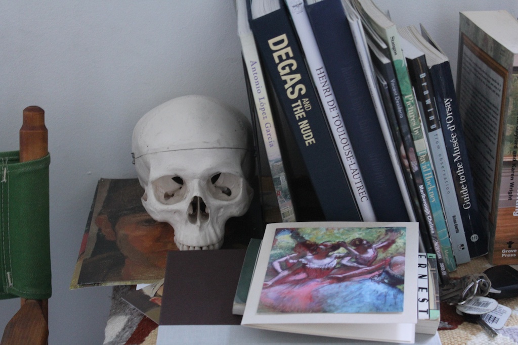 Paintings are conversations between creator, subject matter, and painting. The most poignant creations are completed 'conversations' where the artist has reacted to his subject matter and has continually expressed that reaction on canvas until each individual part contributes to the whole. This is only attainable if the artist spends many hours working, scrutinizing, and re-working until the conversation is complete. I'm usually faced with several unfinished works at once. This is a deliberate practice that allows me to keep my responses to my paintings fresh. Also, I find it essential that the studio is tidy. A well-ordered studio creates an environment that promotes both the creation of work and grants the space needed to think critically.