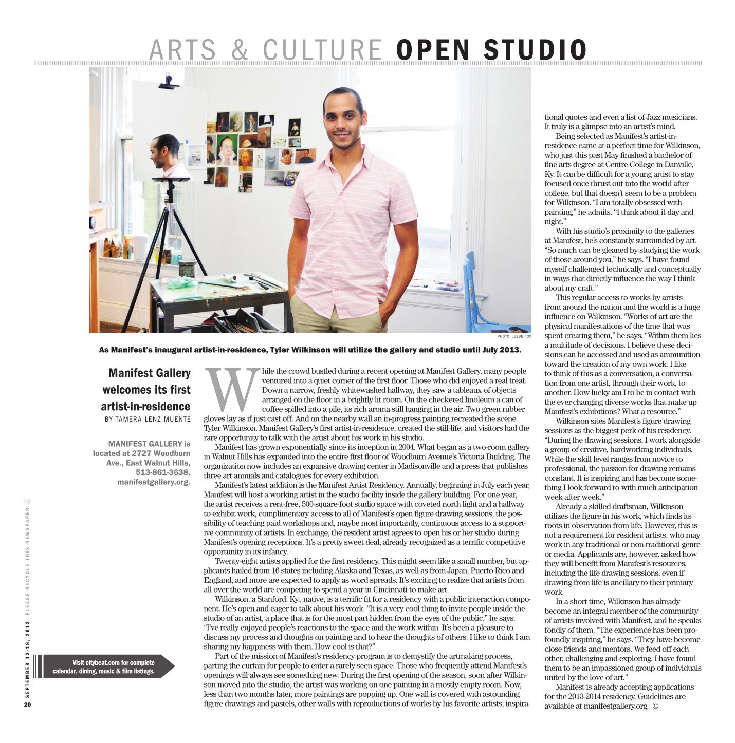 Manifest Gallery Welcomes Its First Artist In Residence, OPEN STUDIO, CityBeat, Tamera Lenz Muente, September 2012