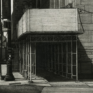 This is one of the ideas behind why I use ink: to depict reality in a medium used to take the viewer out of reality. Since ink is permanent, it demands accuracy and focus. It is not a medium that allows mistakes and everything must be drawn correctly. If something is out of place, it was done as a subtle way to enhance the narrative. For example: if the work is done from the point of view of someone afraid of the number five, than everywhere there would be numbers, they will be fives. My work, "Obstruct," is a depiction of the real world through the eyes of the anxious. A reality so saturated in inner horror that it has become a world of fantasy.
