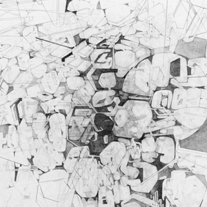 The imagery in my work is architectonic. The elements in the drawings swarm, merge, cantilever, float, implode, and explode. In the drawings, there is also a significant amount of negative space around the image clusters. With a small object on a large surface, the mind tries to predict what will happen next creating the possibility of implied movement and growth.