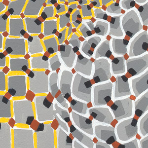 I am working in pencil, gouache and acrylic paint, which are very forgiving as I make adjustments and changes while developing each work. Clarity is my goal as many layers accumulate, and with clarity the intention of each work becomes apparent.