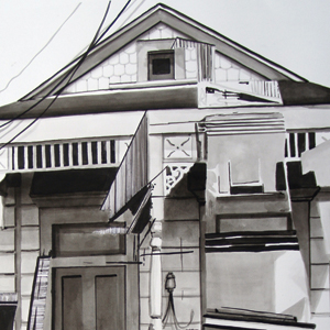 My current body of work focuses on the aftermath of both man made and natural disasters. I archive, appropriate, digitally manipulate and then draw and paint these images. I situate these images somewhere in between abstraction and representation in order to create a dialogue with modernist painting through postmodern practice. I draw and paint these images not only to further slow them down, but to also support traditional notions of the "sublime landscape," one that is uncontrollably vast and frightening, within a contemporary context of anxiety and fear. I choose to focus on moments of reprieve; quiet moments following a climax, where one can assess the physical and emotional damage created by previous events. I am both drawn to these images and repelled by them. They speak of a time where agenda setting, political rhetoric and consumption are perpetuated and often manufactured by the media. As mass media sets the psychological and emotional tone for life as we know it, I work in an attempt to differentiate neurosis from my own understanding of reality.