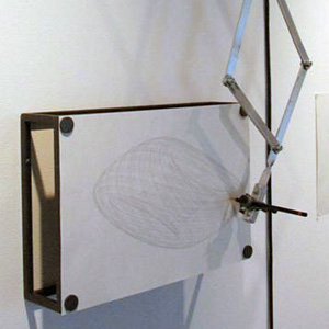 Auger's work explores the artistic practice through a process of invention and engineering. Each mechanical sculpture is fabricated so that the machine's parts are choreographed to create a drawing. By allowing the machine to emulate the artist's hands, the machine becomes the creator of art. The repetitive motions appear predictable but over time the imperfections lead to original drawings that archive the passage of time. The resulting drawings are the product of a sophisticated collaboration between artist and invention that emphasize the act of creating.