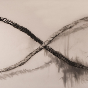 My current work centers on historical maritime maps and nautical artifacts including rope lines. My work is sometimes obsessive--I draw the same subject repeatedly, experimenting with different ways of highlighting or shifting the bond between real object and rendered likeness, but I am trying to describe them in a way that is not illustrative or simply descriptive. I build up gradual layers of marks then scrape and erase, leaving a debris that reveals the history and construction of the form. But the more the marks accumulate, the more evidence of my own anxiety, faulty memories, and things not seen is exposed. So you could say that I am more interested in investigating the gap that exists between the mental image and actual object than describing an object.