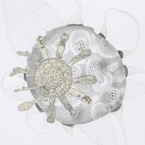 I use gouache, graphite, ink, acrylic and collage to create hybridized versions of seemingly familiar yet peculiar scenarios. In my studio I take on the role of a biologist, dissecting images and classifying forms, paying close attention to the patterns and oddities in nature. Through continuous and detailed reworking, each mark is thoughtfully considered before making it onto the page. Using reference materials such as vintage medical books, 20th century agricultural magazines, and scientific journals I strive to create elegant ecosystems within the context of disturbing genetic realities.