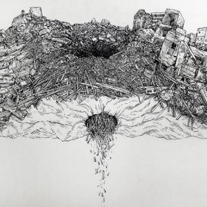 My work primarily explores consumerist culture through modes of accumulation, hoarding, and collecting. I use drawing as a form of documentation; cataloguing and archiving my life through detailed images of memories, events, and objects. In my most recent body of work, In Ruins, I illustrate imaginary piles of rubble, apocalyptic in nature, symbolizing the debris left after natural and man-made disasters.