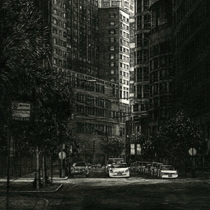 In my opinion, when most people think of pen and ink, they think comics, which are usually created for kids. "Art" however, is marveled by but often misunderstood by children. My love for comics is partly why I enjoy creating these technically demanding works in the "comic book medium." To give a parallel example: if an author would be working in this way, they would be writing a tragedy in crayon. I find this contradiction amusing. My drawings are an extension of myself, and I don't consider myself a serious person. When I draw, I like breaking from the seriousness or the maturity that art has come to be attributed with. I consider my drawings as works of realism in that I don't hide behind abstraction, surrealism, or some profound statement. I draw what I see or what I imagine other people see and more often than not my perception is skewed.