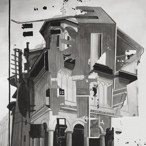 My current body of work focuses on the aftermath of both man made and natural disasters. I archive, appropriate, then digitally manipulate found photographs. I situate these images somewhere in between abstraction and representation in order to create a dialogue with modernist painting through postmodern practice. I draw and paint these images not only to further slow them down, but to also support traditional notions of the "sublime landscape," one that is uncontrollably vast and frightening, within a contemporary context of anxiety and fear. I choose to focus on moments of reprieve; quiet moments following a climax, where one can assess the physical and emotional damage created by previous events. I am both drawn to these images and repelled by them. They speak of a time where agenda setting, political rhetoric and consumption are perpetuated and often manufactured by the media. As mass media sets the psychological and emotional tone for life as we know it, I work in an attempt to differentiate neurosis from my own understanding of reality.