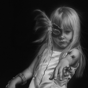There is a strong sense of contrast in all of my work. Not only do I demonstrate it literally, with lighter images appearing out of a dark background, but figuratively as well with opposing objects. Through the use of juxtaposition, I parallel the girl's youth and beauty with antiquated worn objects; her extravagance, with ominous decay. Revealing that in life, the pursuit of materialistic gains are ultimately all in vain.