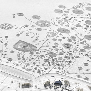 The creative process constitutes a significant part of this work. It is important to me that participants experience the elements of nature while they help me transform their own familiar snow landscape into a piece of art. I hope that the aerial photographs that I take right after completion of each piece can demonstrate also to a larger audience how the landscape is transformed into a piece of art. This changes our perception of the landscape and accentuates the beauty and magic of the natural environment, and thus inspires awe and appreciation for art as well as for nature. I deem this important – especially as modern society becomes increasingly alienated from the natural world. I believe that for a successful future of our race we will need to reconnect with our planet's nature, understand it better and take better stewardship thereof.