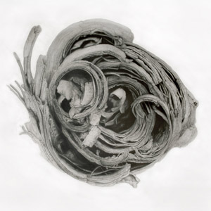Since I walk often in the woods, I am confronted regularly with massive, upended roots, fissured, furrowed tree barks, quirky burls. Perhaps because of boredom or reverie, gnarly shapes grab my attention and incite my curiosity.