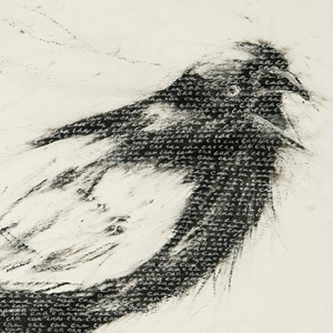 the sky, and their cawing is a truly transporting force. I have listened and watched, trying to understand their enigmatic communication, but can only find inadequate words to describe the phenomenon. Words like caw. "Caw" explores the reductive nature of language we ascribe to animals. in this case, crows and how language can limit our understanding of the complexity of animal communication. The drawings in this series play with