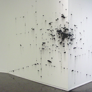 of a house, fence as well as stones, sticks, bones and flies, imply transitional moments of growing and developmental processes. Resembling both monumental and microscopic visions, the suggested structures often struggle with their own stability -- it is unclear whether the structures are being built or destroyed.